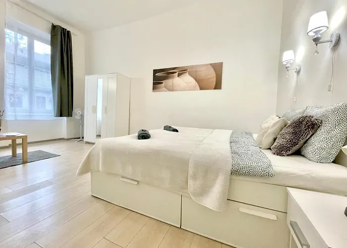 El White Apartment Near The Famous New York Cafe ofrece a sus huéspedes la comodidad de las instalaciones de autoservicio, incluyendo un hervidor eléctrico, una nevera y un horno. La estación de autobuses Nyar utca está a 5 minutos a pie del apartamento.